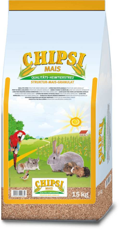 CHIPSI MAÍZ es la alternativa inteligente de lecho para todos aquellos a quienes les gusta que sea natural y ordenado. Fabricado a partir del interior de la mazorca de maíz, se crea un granulado pesado y adherente que no se pega al pelaje ni a las plumas, por lo que tampoco se extiende ni revolotea por toda la casa.